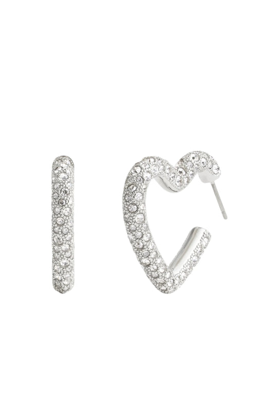 COACH PAVÉ HEART HOOP - Earrings - Silver