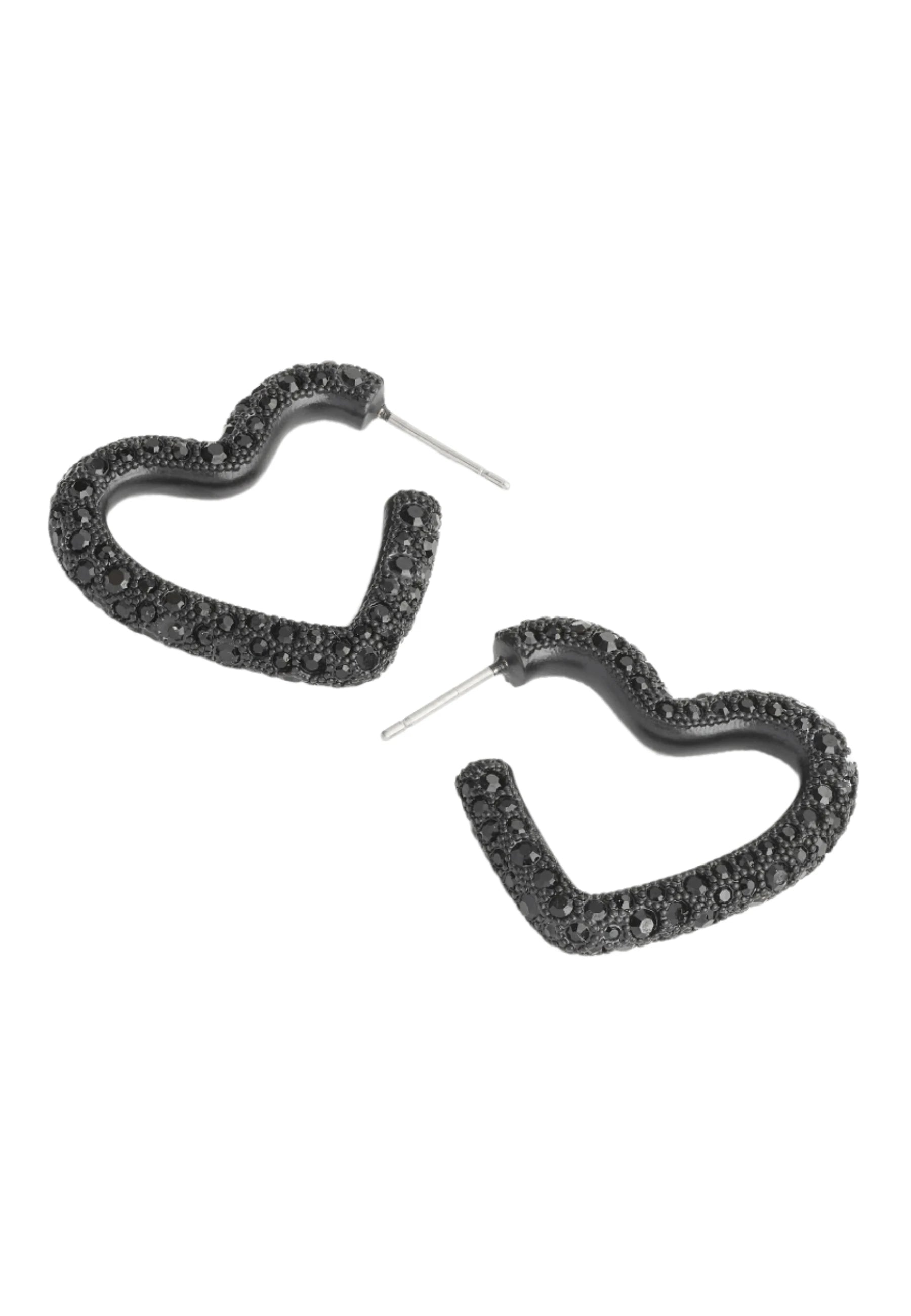 COACH PAVÉ HEART HOOP - Earrings - Black